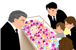 納棺の儀をとり行います。故人に持たせてあげたい想いでの品(家族からの感謝の寄せ書きやお手紙。お気に入りの洋服やプレゼント品など)を選び持たせてあげましょう。※ただし燃えないものは避けてください。